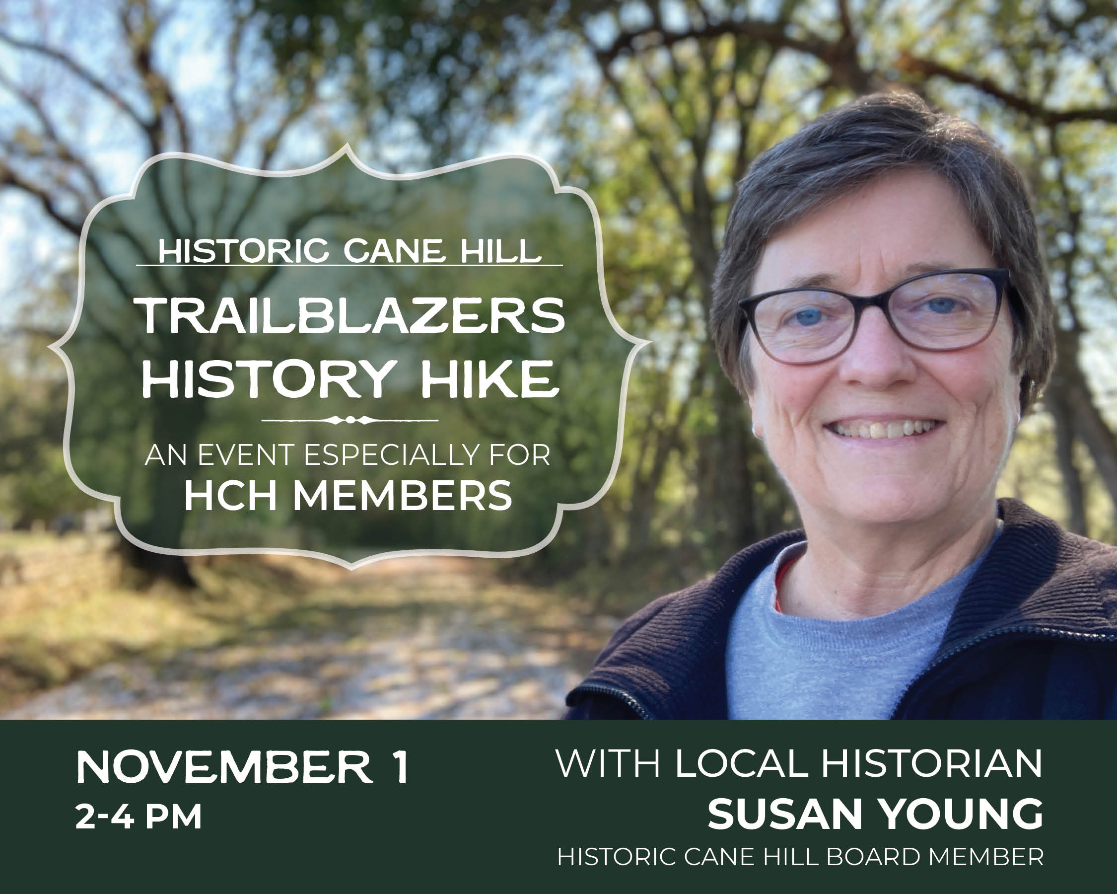 Historic Cane Hill’s members have exclusive access to the encore presentation of our Trailblazers History Hike on Saturday, November 16, from 2-4 p.m. Local historian and Historic Cane Hill board member Susan Young will guide members along our History Trail. Guests will view several of HCH’s iconic landmarks, including the Methodist Manse, our oldest standing […]